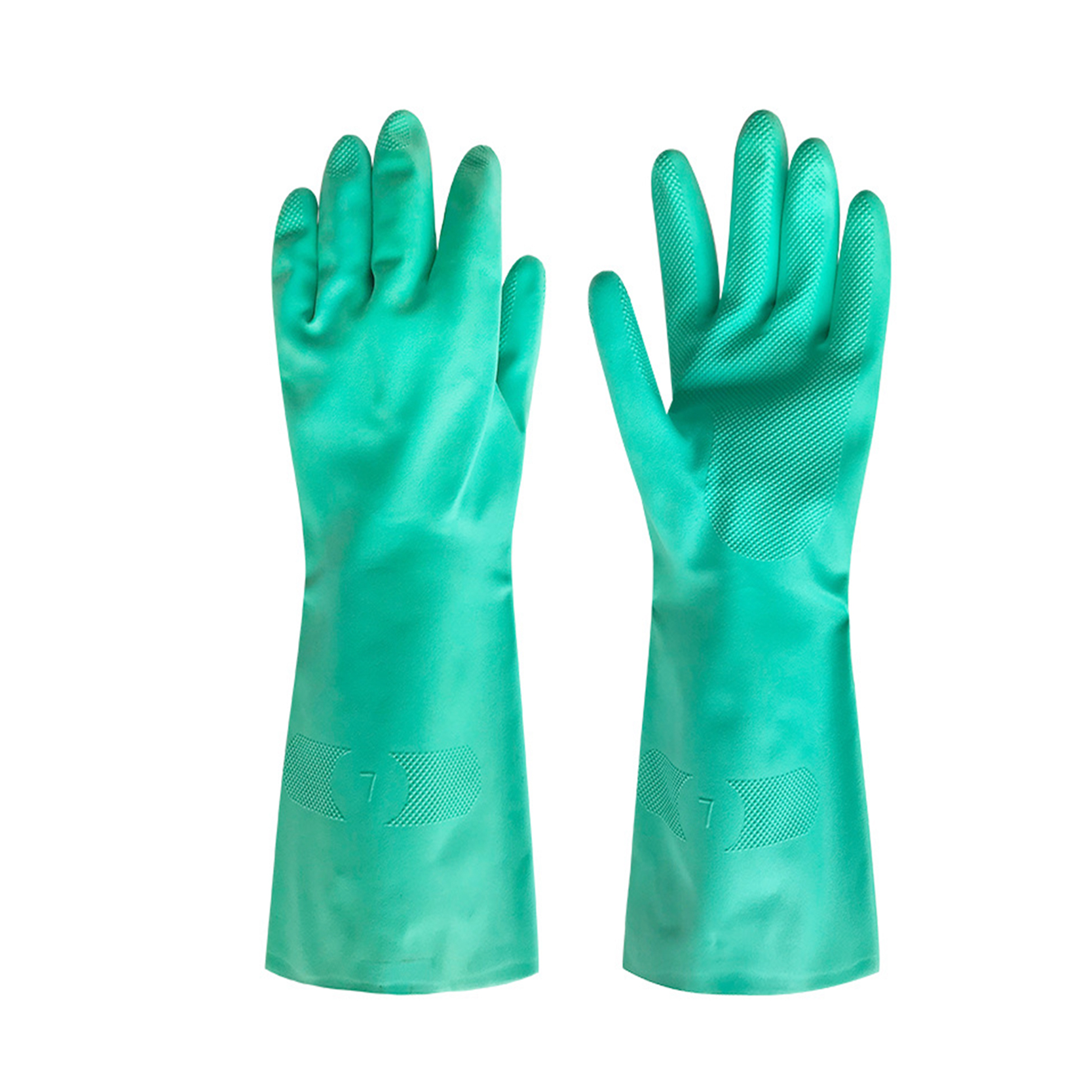 Green Diamond Texture Nitrile Chemical Resistant Gloves Reusable Heavy Duty Industrial Safety Work Gloves Without Lining